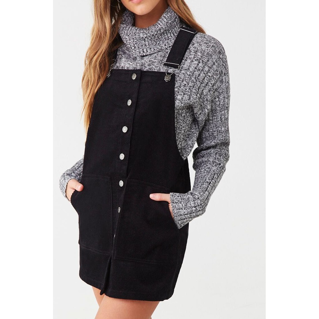 Forever 21 Women S Corduroy Overall Mini Dress Black Shopee Philippines